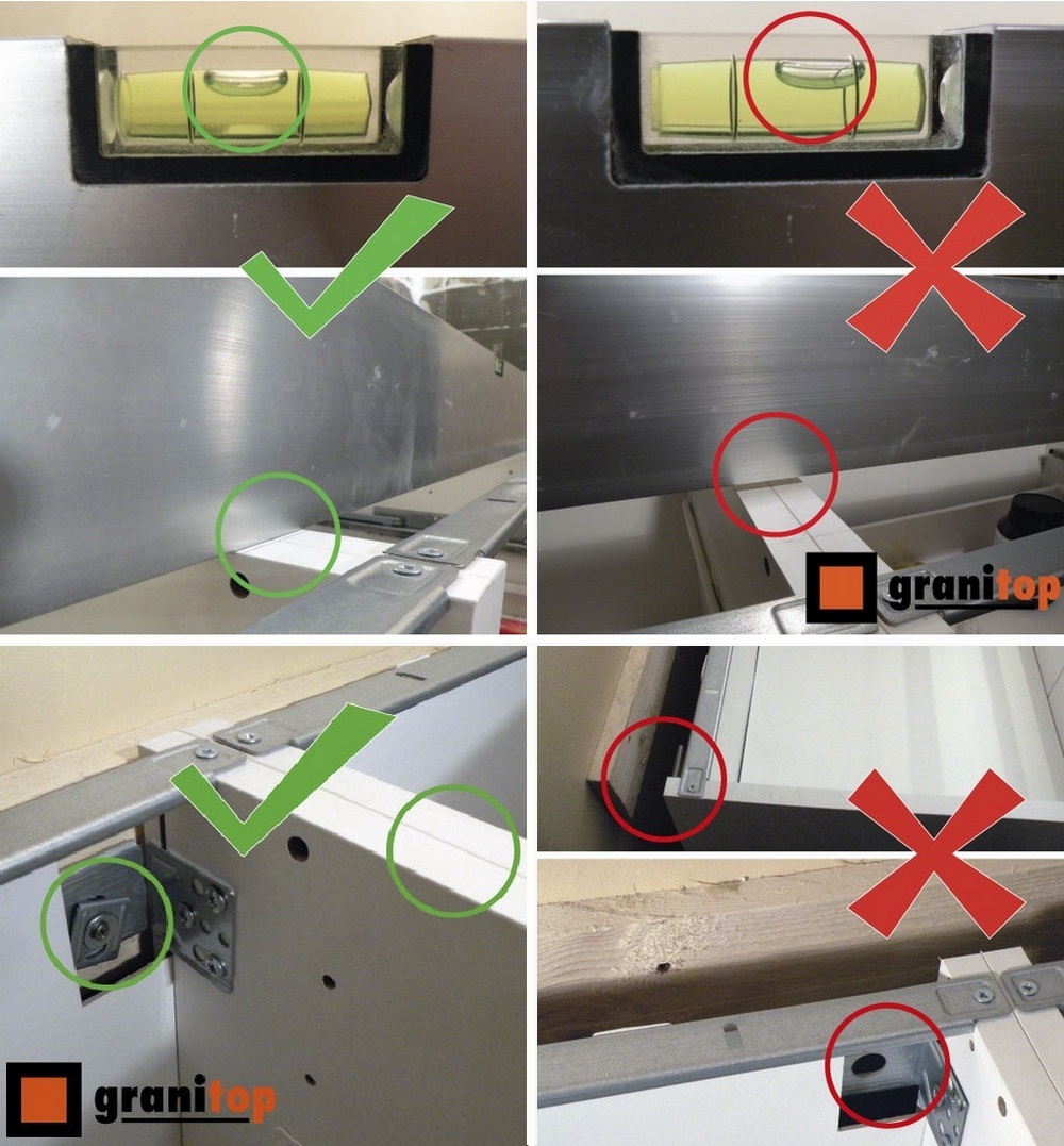 Köksinredning, utslagsvask och blandare bör vara på plats så att mätaren skall kunna se dess tillverkare/modell för att kunna ta mått. Det är önskvärt att samråda med Granitops medarbetare om man vill köpa en köksinredning – alla spishällar och vaskmodeller behöver inte vara möjliga att samordna så att man på plats kan försänka dem. Anteckna gärna speciella önskemål på papper.