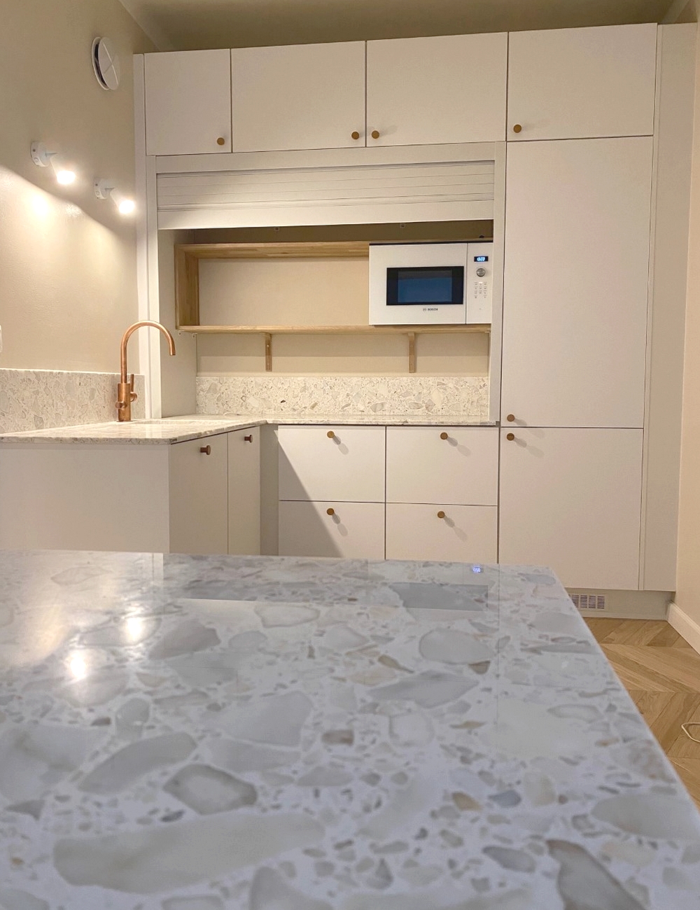 Terrazzo Calacatta on vaigust, värvainest ja naturaalsest Calacatta marmorist valmistatud kunstkivi. Terrazzo Calacatta on kunstkivi, mis sisaldab valge Calacatta marmori kilde ja tükke. Võrreldes teise terratsoga (Carrara 0/25) on marmorikillud suuremad ja kohati klaasjad. Tänu sellisele valgusmängule on kivi sisekujundajate ja kodukaunistajate hulgas eriti hinnatud.