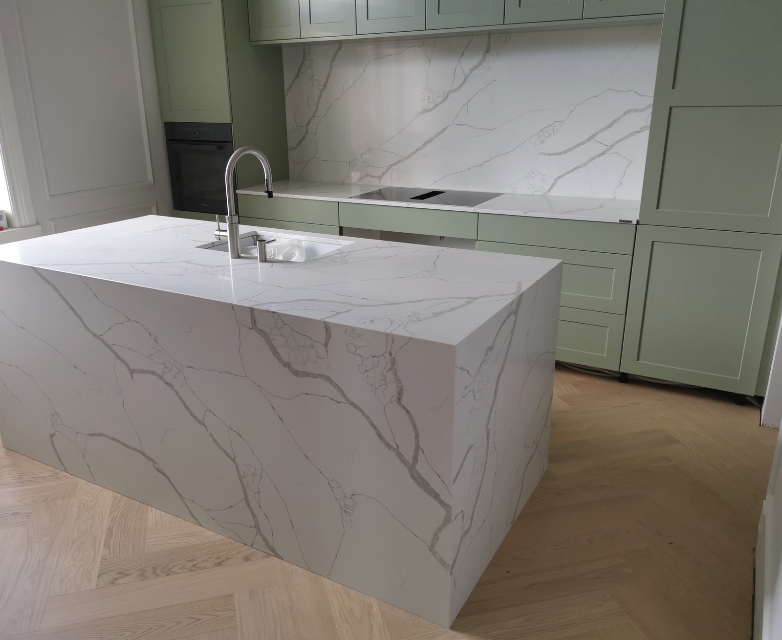 Crystal Calacatta Silva on heleda tausta ja voolava halli marmorimustriga valge kvartskivi. Selles materjalis on ühendatud kunstkivi tehnilised omadused ja kauni Calacatta marmori looduse poolt viimistletud välimus.