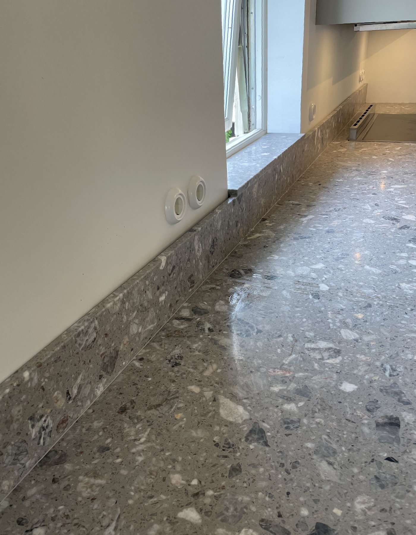 Terrazzo Fior Di Pesco on hall kunstkivi, looduskivi kildudest valmistatud terratso, mille sidusainena on kasutatud vaiku.