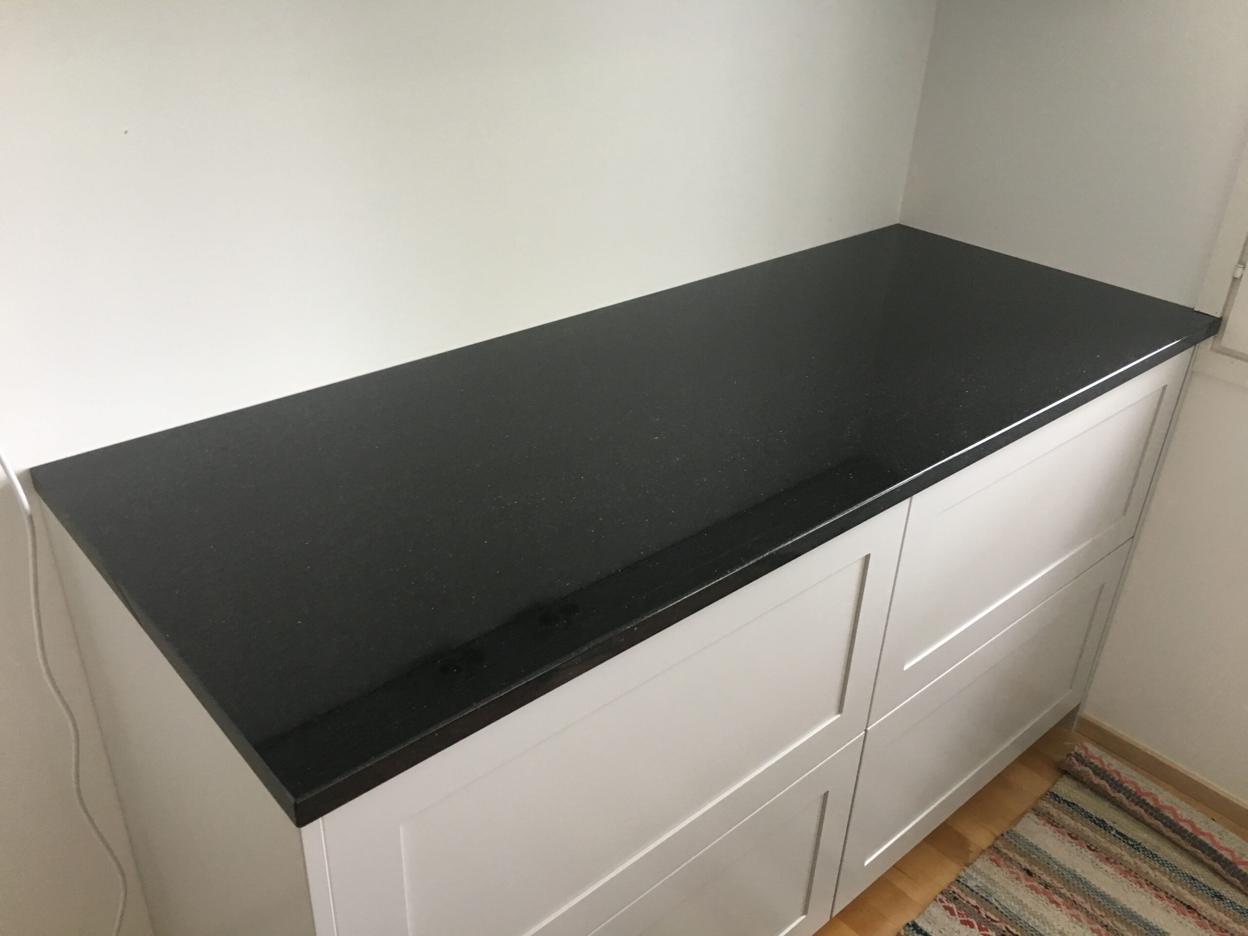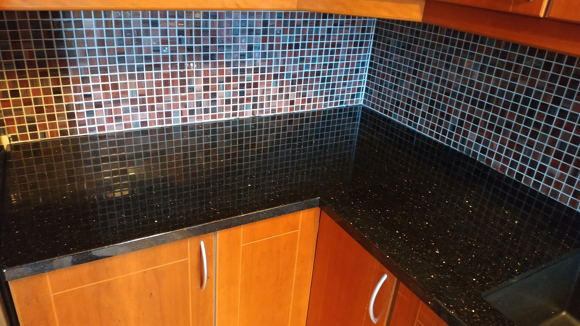 Blank granitt med kobberprikker gjør at benkeplater laget av Galaxy Star legges merke til umiddelbart. Granitten er perfekt sammen med moderne gylne eller sølvfargede kjøkkenapparater.