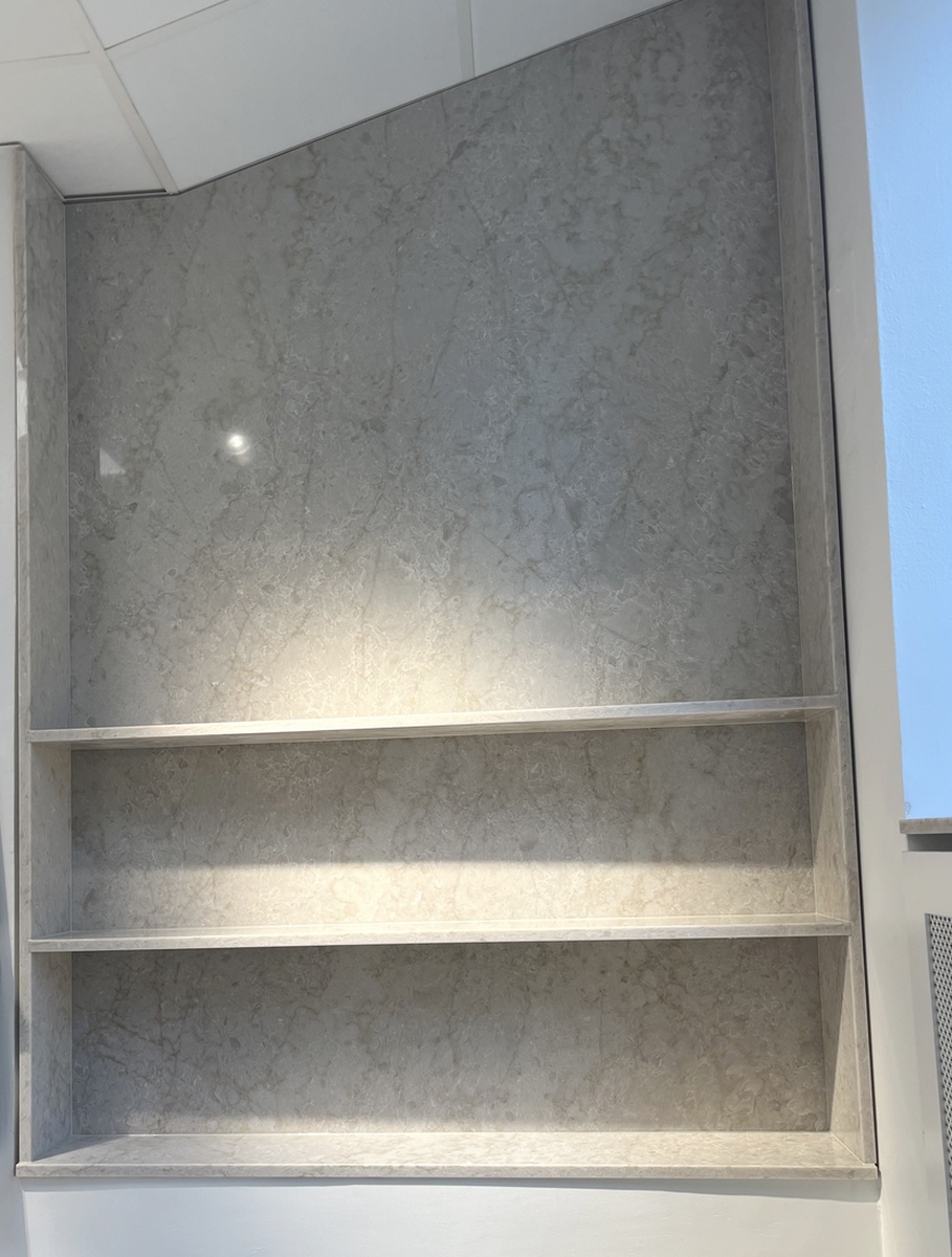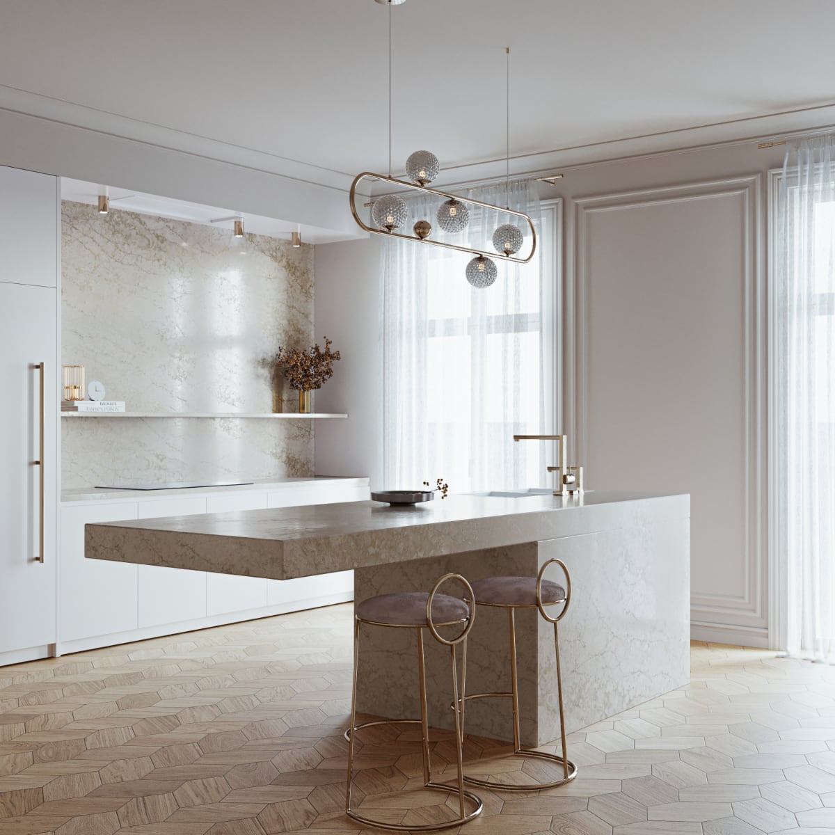 Glencoe on vastupidav kvartsist töötasapind, mille soojast toonist kumab läbi pisut marmorjas taust. Kreemjasvalget värvi õhukesed veenid selle materjali pinnal tekitavad Glencoe’le kvartsiidisarnase pragulise mustri.