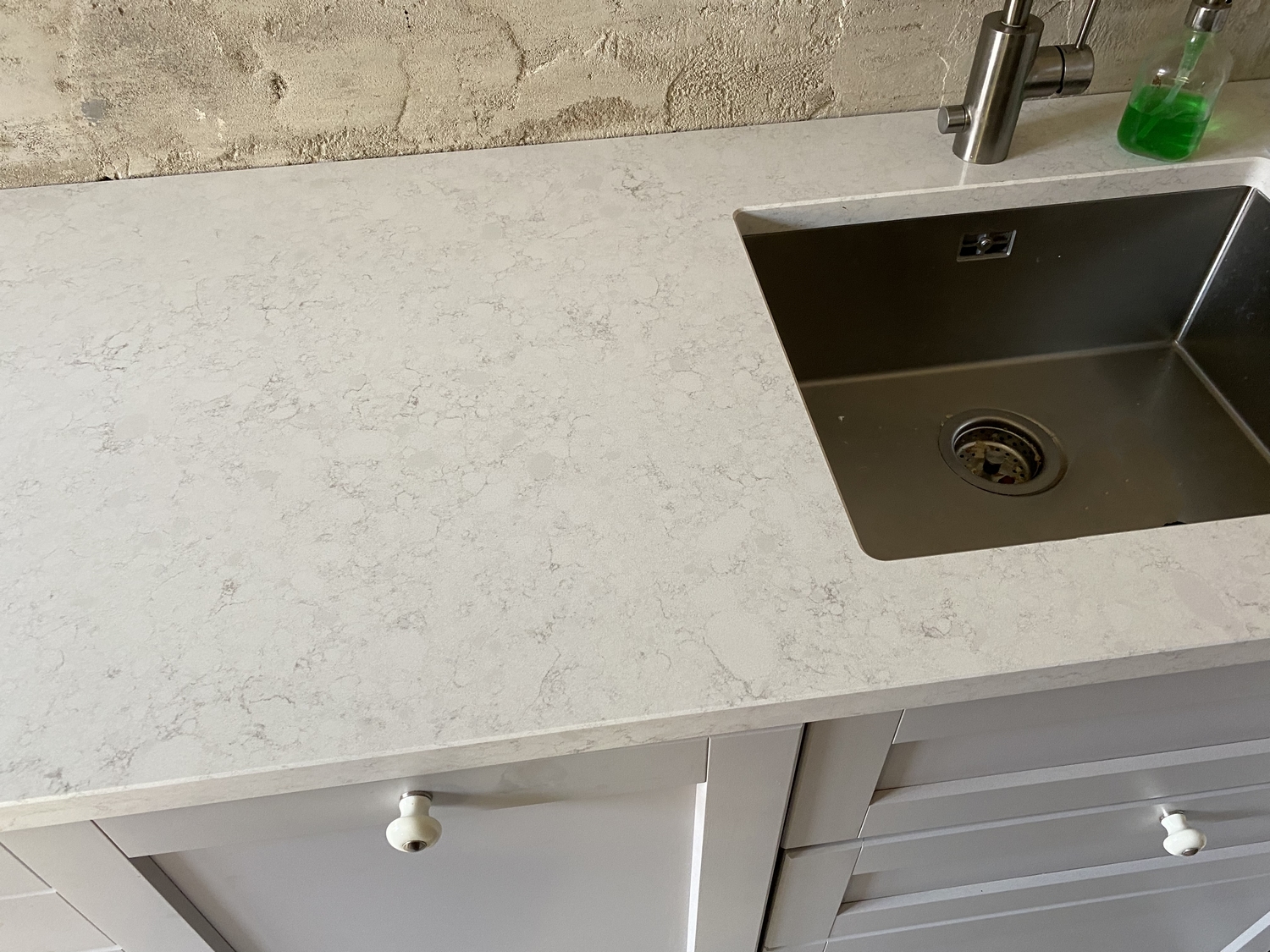Noble Arco är en ljusgrå marmorliknande kompositsten. Kvarts-stenskivor är starka, hållbara och extremt hygienisk.