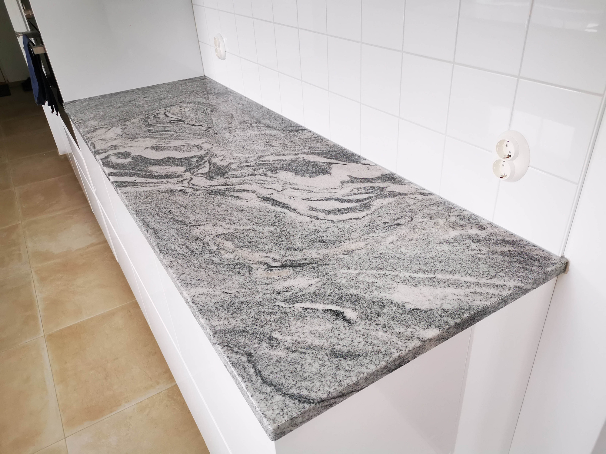 Viscount White är ljusbottnad indisk granit med mörkt svallande mönster.