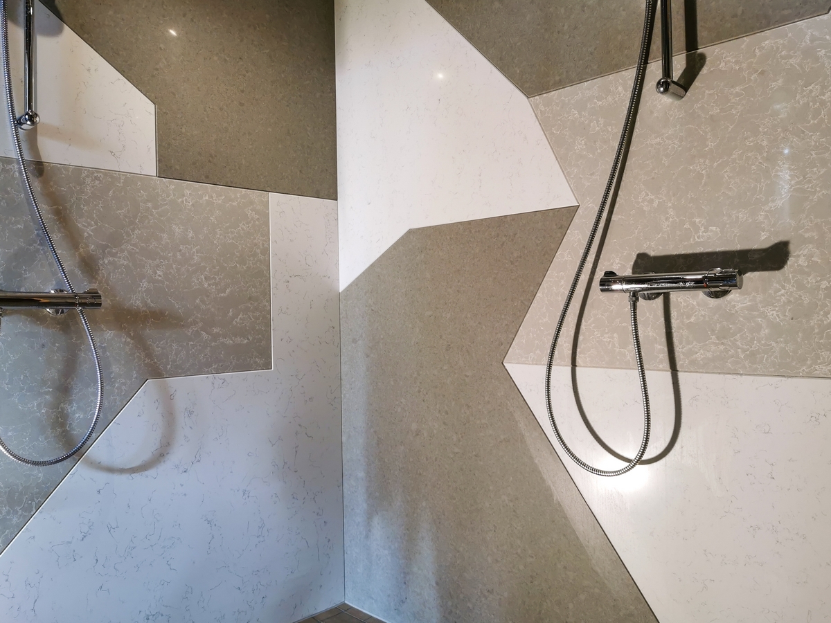 Ett sätt att framhäva stenskivor är att använda stenbakgrund, kantlist eller fönsterbänkar i samma material. Ett kök, badrum eller kontor planerat som en helhetlösning förblir attraktiv genom årtionden och höjer självklart även värdet på egendomen.